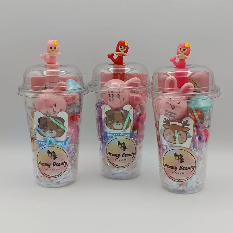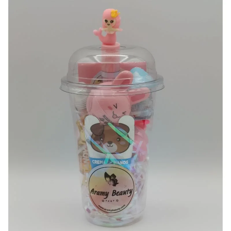 Este original vaso con tapa cúpula transparente es mucho más que un accesorio: ¡es una explosión de color y diversión! En su interior encontrarás 7 brillos labiales con diseños alegres y sabores irresistibles, perfectos para hidratar y dar un toque brillante a tus labios. Además, incluye una crema de manos con aroma delicioso y textura suave.