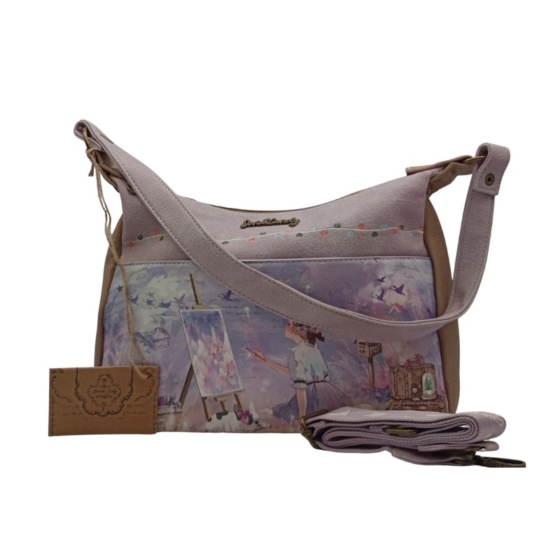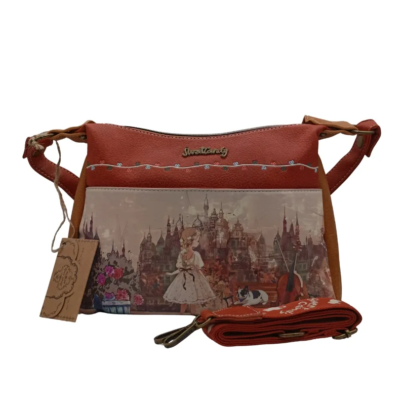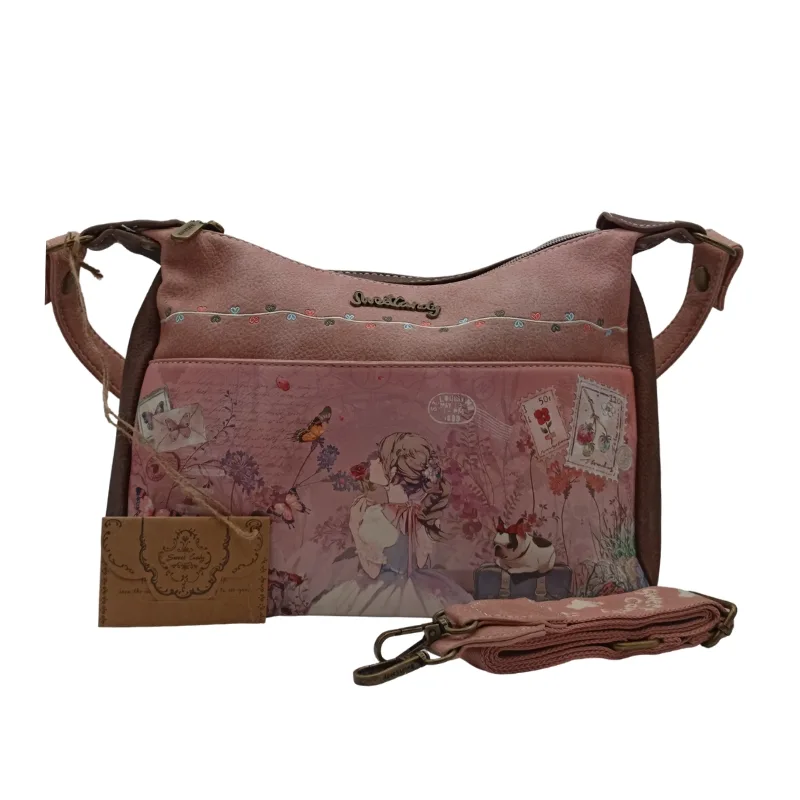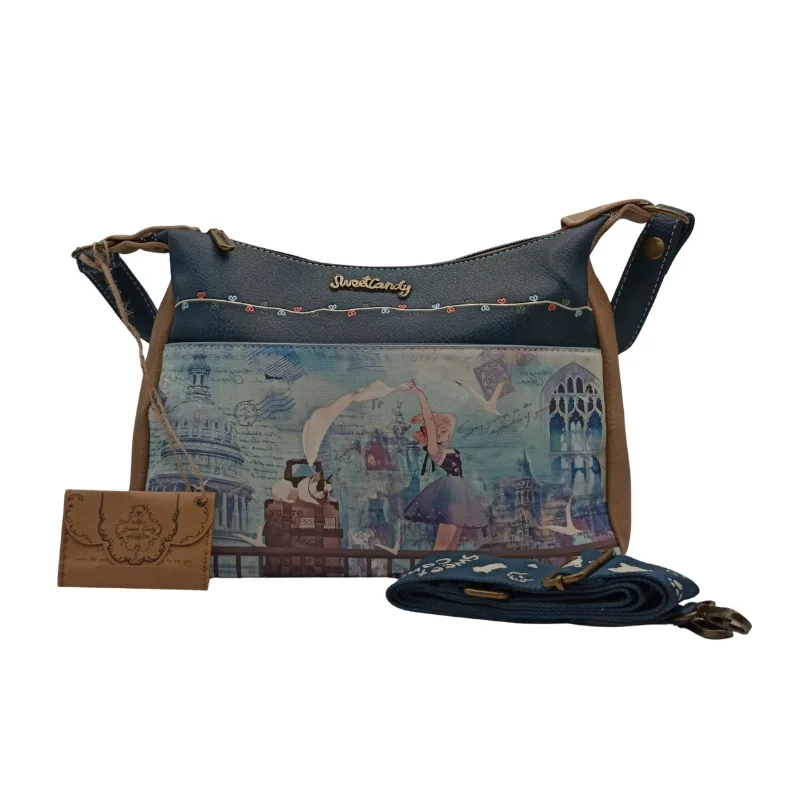 Bolso de hombro con diseño de muñeca Sweet Candy y dos compartimentos principales.