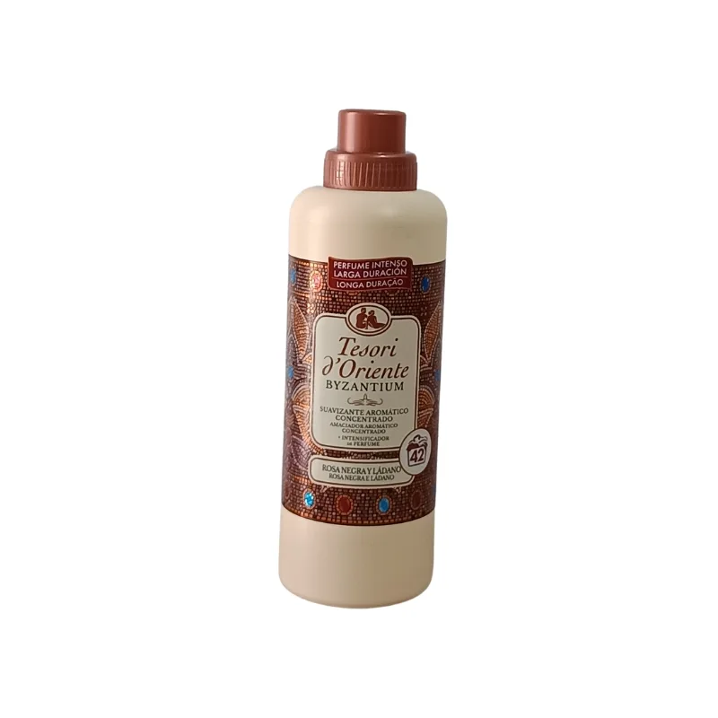Suavizante Rosa Negra y Ládano 760 ml El Suavizante Byzantium de Tesori d’Oriente combina la rosa negra y el ládano, creando un perfume intenso y duradero que transforma cada lavado en una experiencia sensorial única.